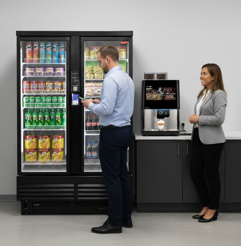Coffee drives traffic. Smart Coolers drive profits. Together, they transform any space into a fully self-serve, high-margin micro-market.